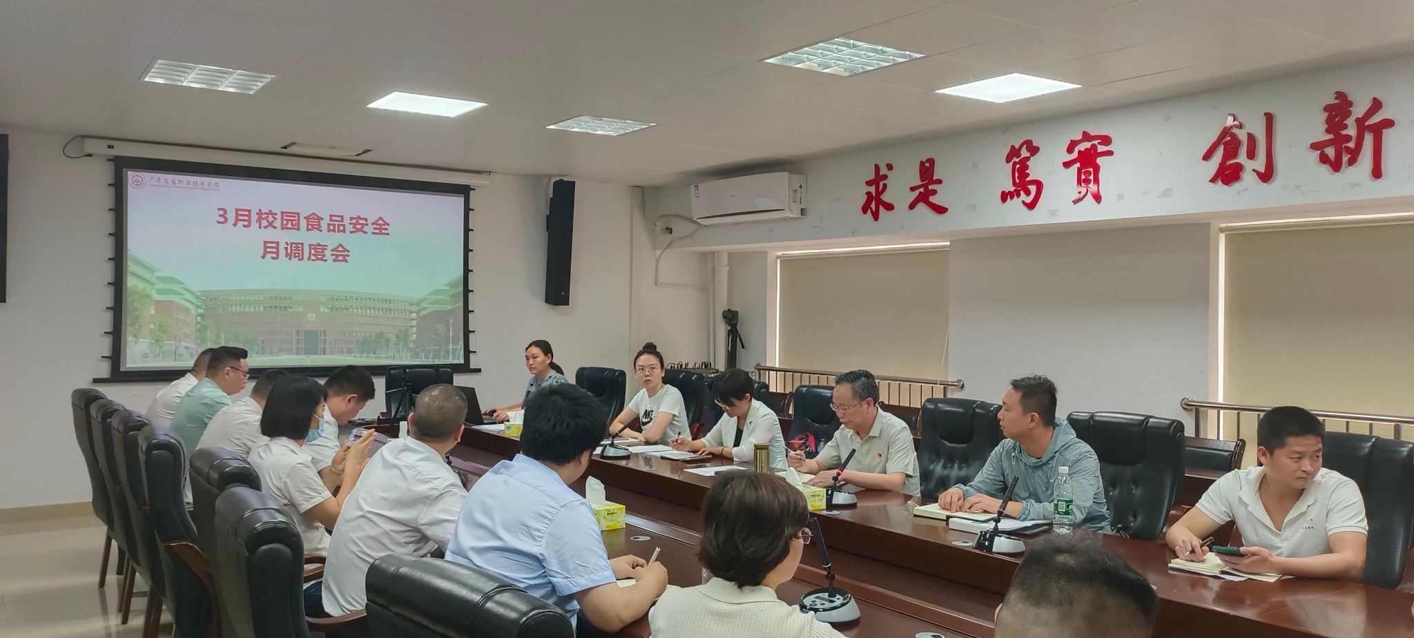 当日上午召开了食品安全月调度会,学院副院长邱文祥、总务后勤部副部长朱惠玲、食品安全总监田鑫、食品安全管理员以及各校区食堂食安总监、现场经理等出席了会议。